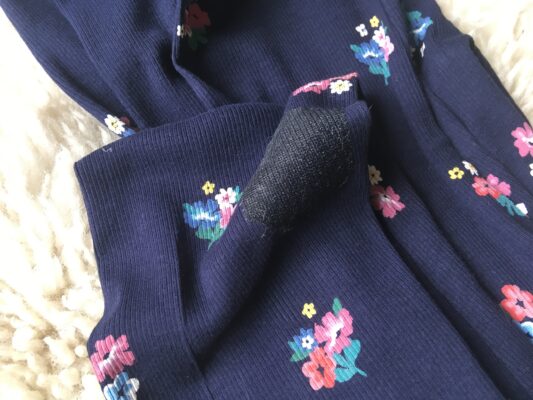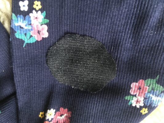 Leggings köper man billigt på många handelsplatser. Det är billigt att köpa nytt men bättre om vi tar hand om det vi redan har. I detta inlägg visar vi ett förslag på hur du snabbt, enkelt och billigt kan laga hål i ett par leggings/tights med lappar.