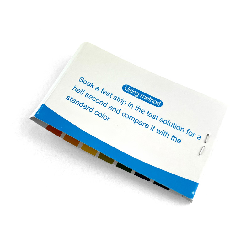 Teststickorna kommer i en förpackning vars insida är försedd med färgschemat för att du enkelt ska kunna matcha färg med pH-värde.