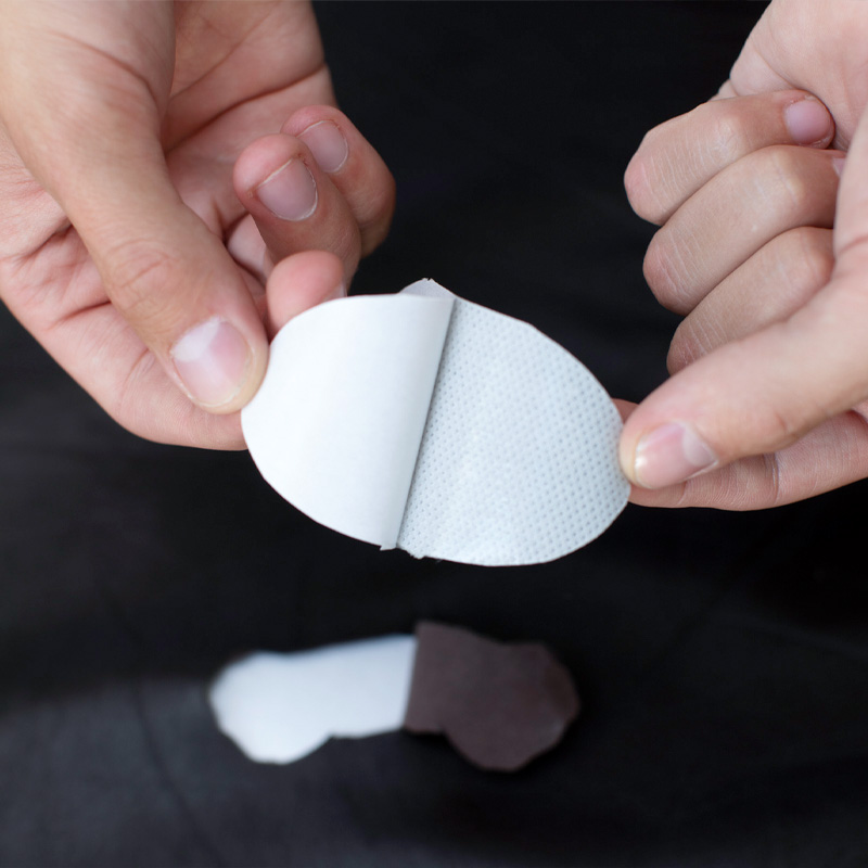 Det är enkelt att lossa bladet från bäraren och vidhäftningen är god. Dessutom är det enkelt att klippa till rätt form på lappen. Tjockleken är 0,9 mm. Därför är det bra att applicera lappen utan risk för att man kommer åt kanterna.