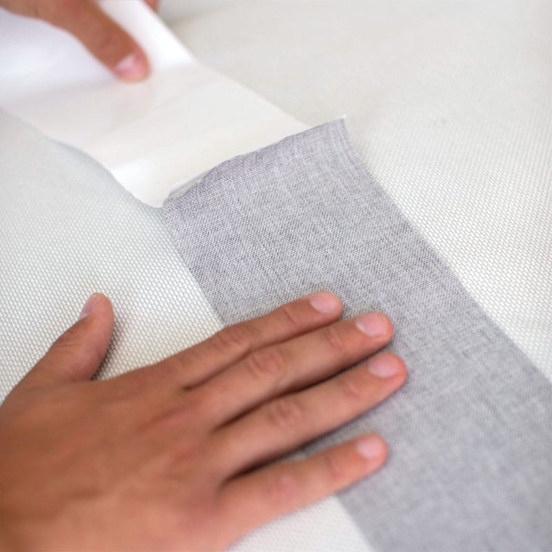 Fäst direkt på kuddar, väskor, soffor, gardiner eller möbler för att förstärka eller dekorera. Den naturliga vävda ytan gör lagningen stilren och hållbar. Vidhäftningen är god, men tyget fäster inte på feta ytor eller impregnerade material.
