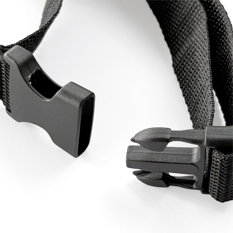 - Klickspänne: Justerbart spänne som gör det busenkelt att säkra och lossa bunten.