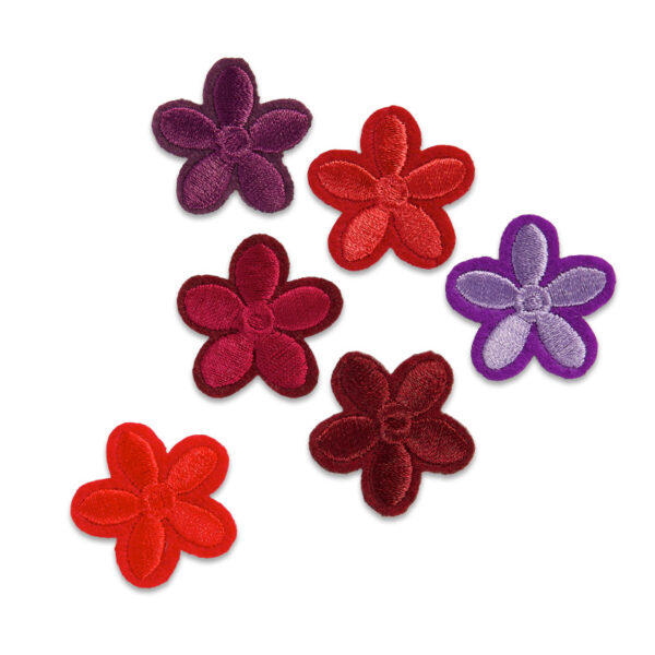 Snygga blommor är tygmärken som mäter ca 3 x 3 cm. Märkena stryker du enkelt fast på kläder eller andra tyger. Lappa, laga eller använd blommorna för att förnya.